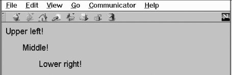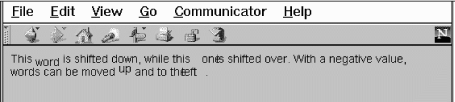 The resulting effects are shown in Figure 6.11. Notice how the shifted words overlap and obscure the surrounding text. Netscape makes no effort to make room for the shifted elements; they are simply placed in a different spot on the page.